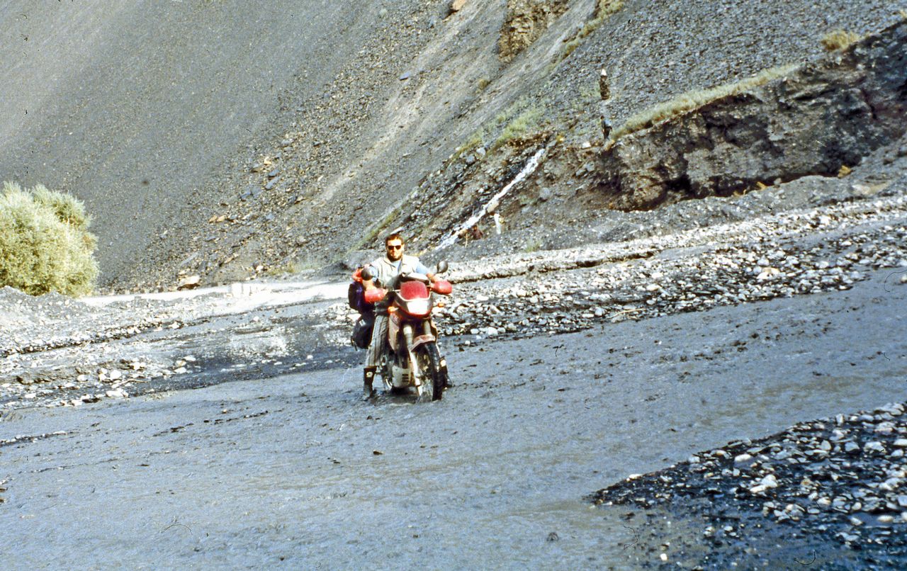 Αντίθετα, οι κοίτες των τριών χειμάρρων που κατέβαιναν ορμητικά και κάθετα στον Κ.Κ.Η προκειμένου να ενωθούν με τον Ινδό ποταμό, μας υποχρέωσαν να περάσουμε τη μοτοσυκλέτα με τα χέρια μέσα από τα κρύα, βαθιά νερά τους. Ήταν τόση η ορμητικότητα και ο όγκος του νερού, που ακόμα και τα τετράτροχα οχήματα δυσκολεύονταν να ξεπεράσουν το υδάτινο εμπόδιο της διαδρομής.